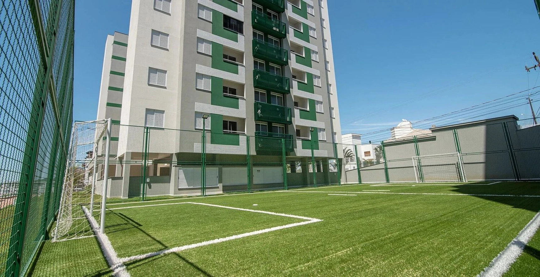 O condomínio oferece campo de futebol, piscina, playground e salão de festas, além de 2 elevadores, garantindo comodidade e acessibilidade aos moradores.