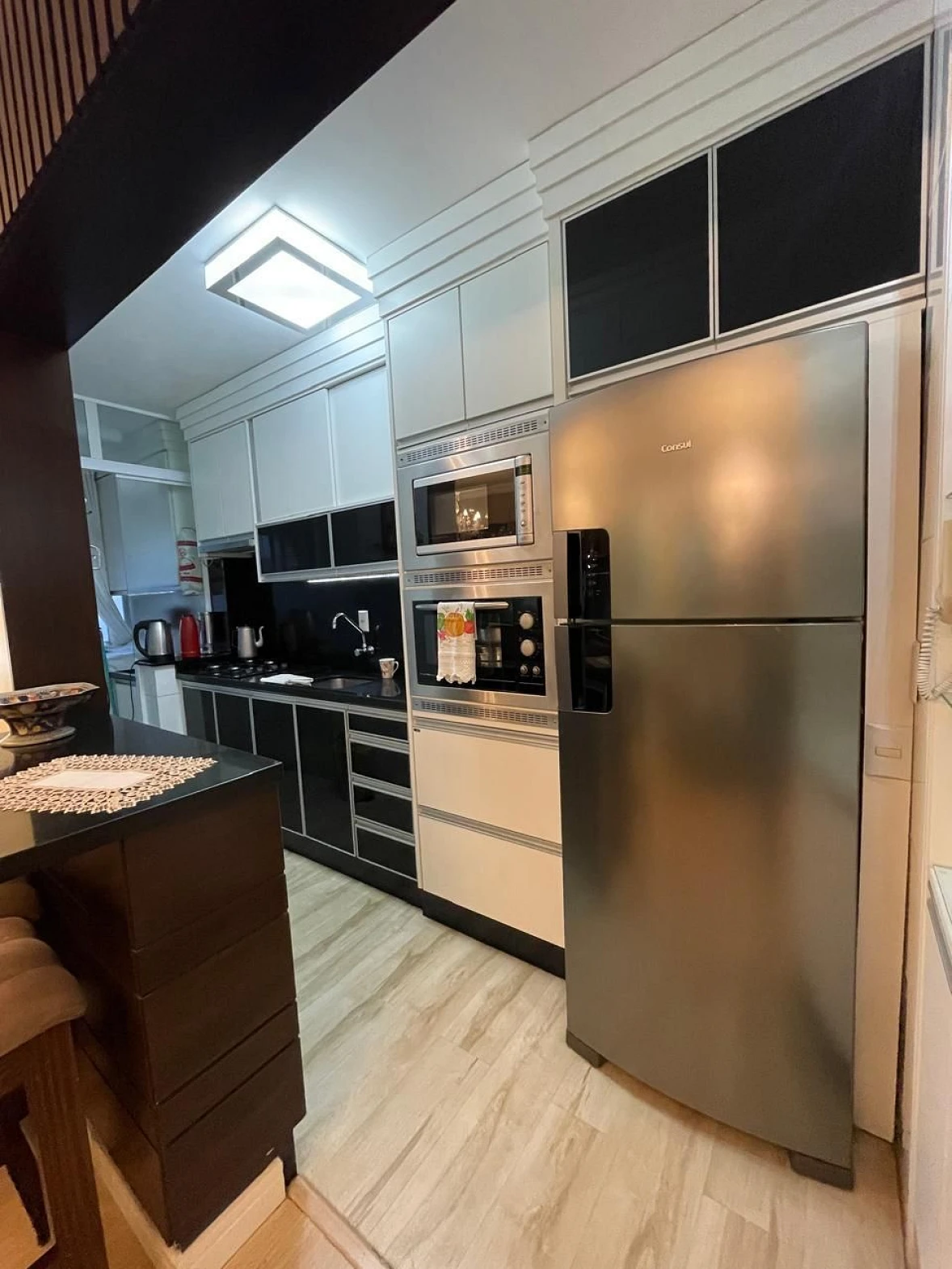 O imóvel possui 76,50 m² de área privativa, distribuídos em 3 dormitórios, sendo 1 suíte, sala ampla com dois ambientes, cozinha completa, além de sacada com churrasqueira a carvão, perfeita para momentos de lazer. O apartamento é semi mobiliado, com móveis planejados, oferecendo funcionalidade e aproveitamento inteligente dos espaços.