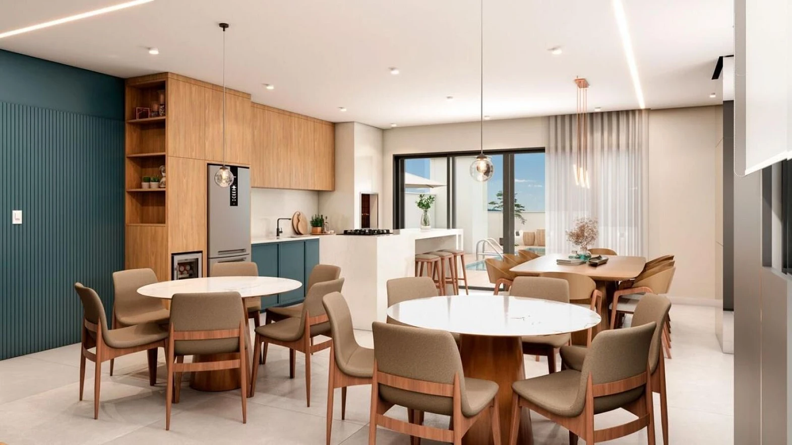✅ Piscina no rooftop com pastilhas e iluminação