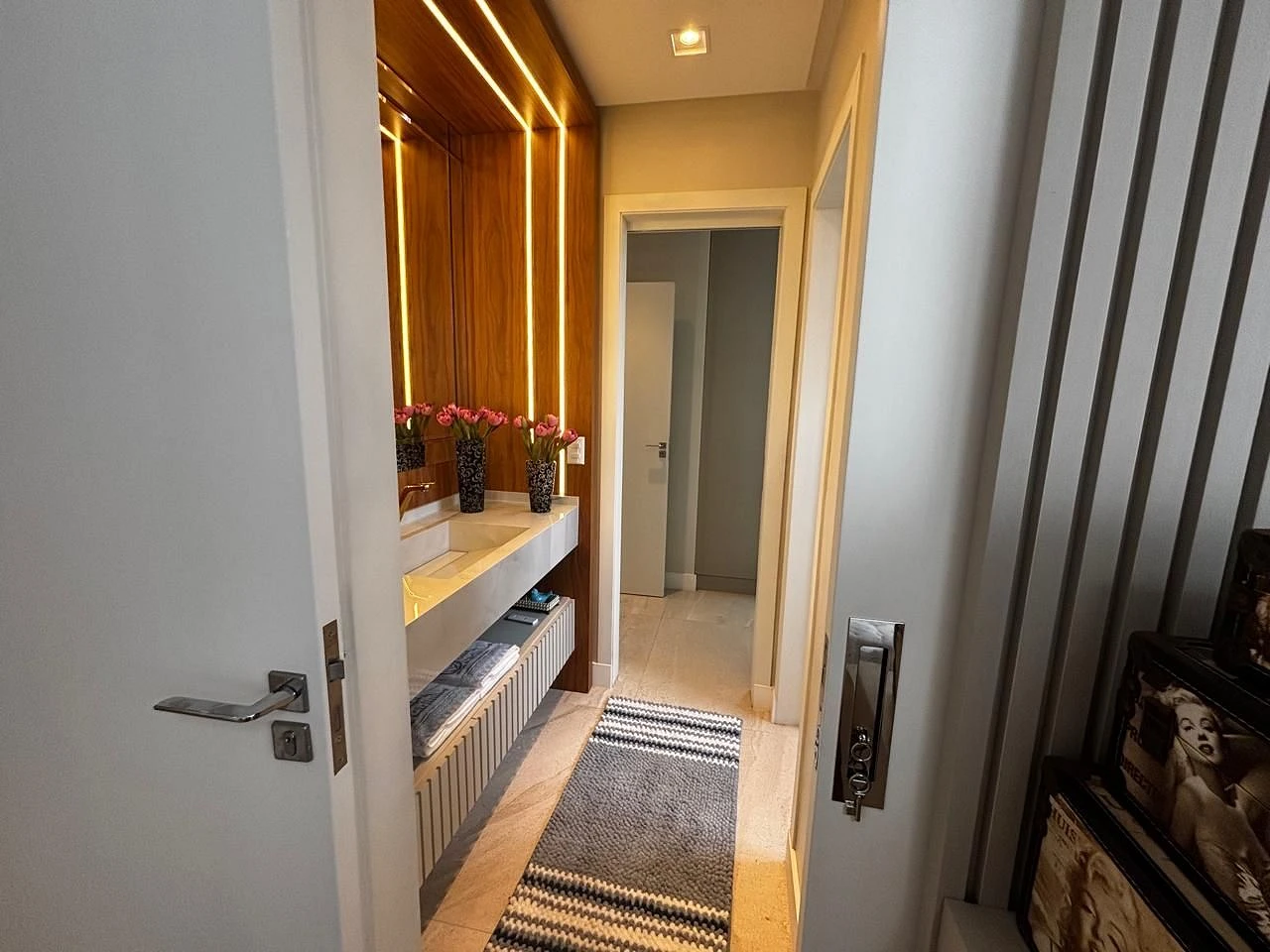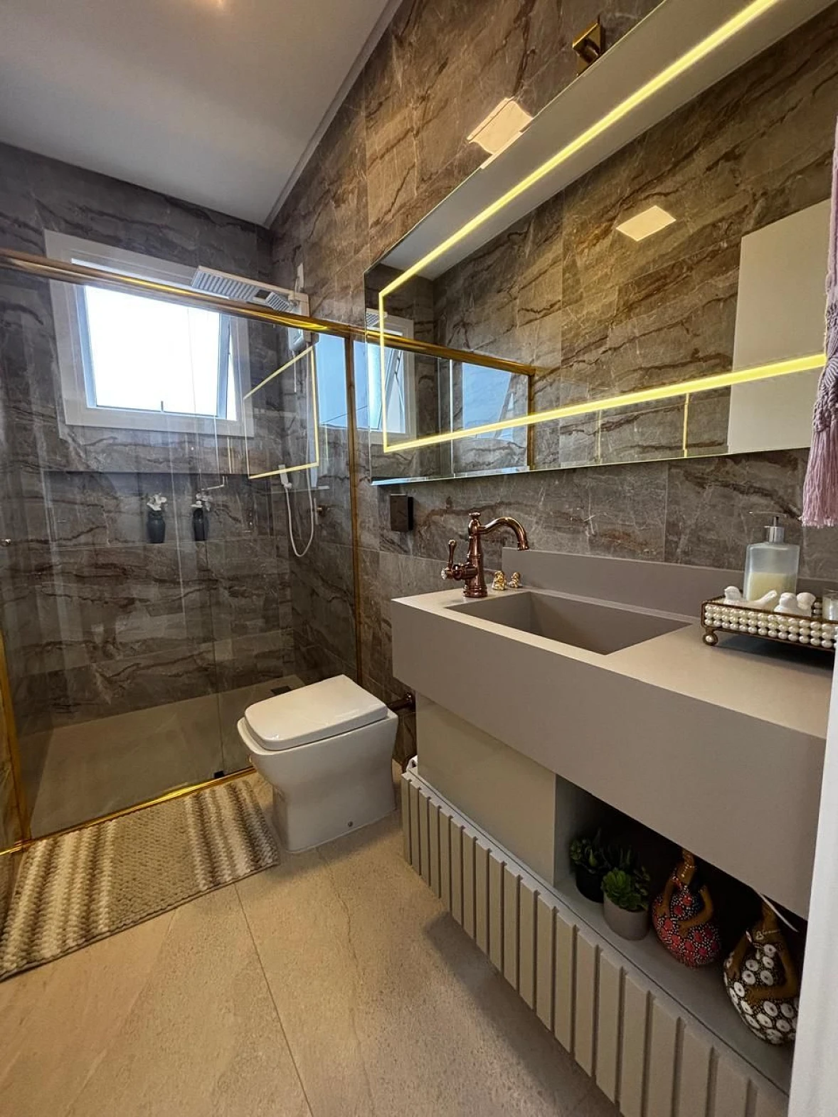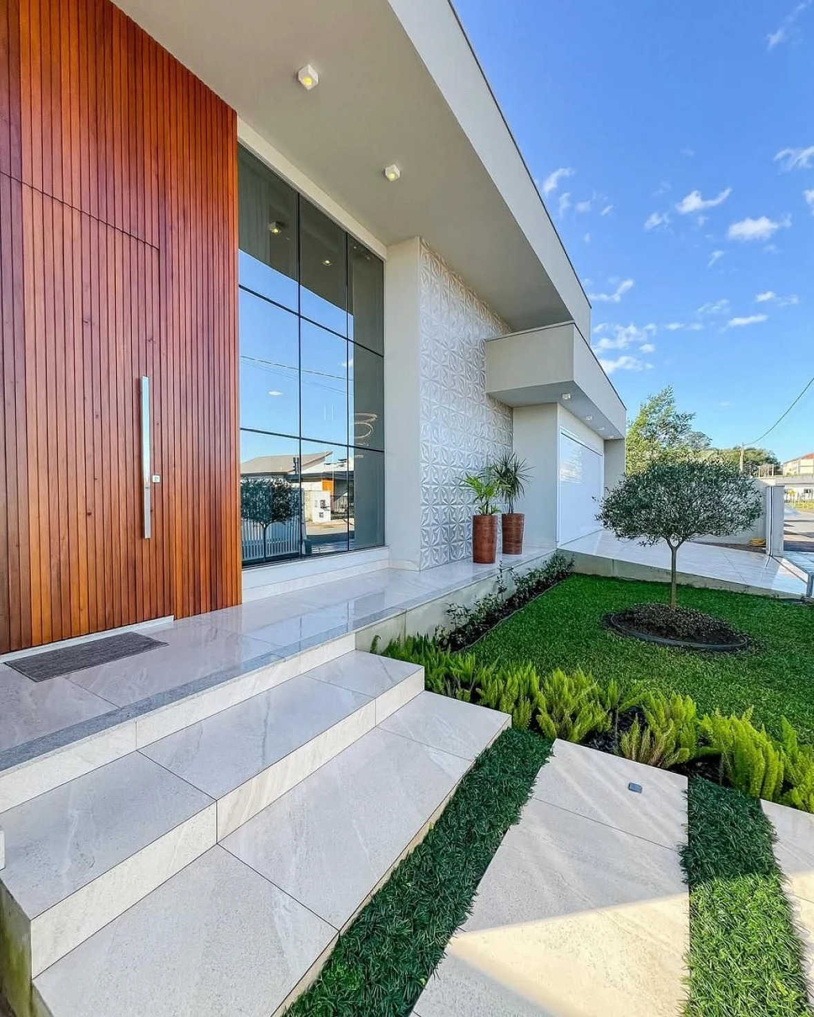 Os diferenciais incluem aberturas em PVC, persianas automatizadas, porcelanato 1x1 em todos os ambientes e acabamentos de alto padrão, reforçando o cuidado em cada detalhe do projeto.