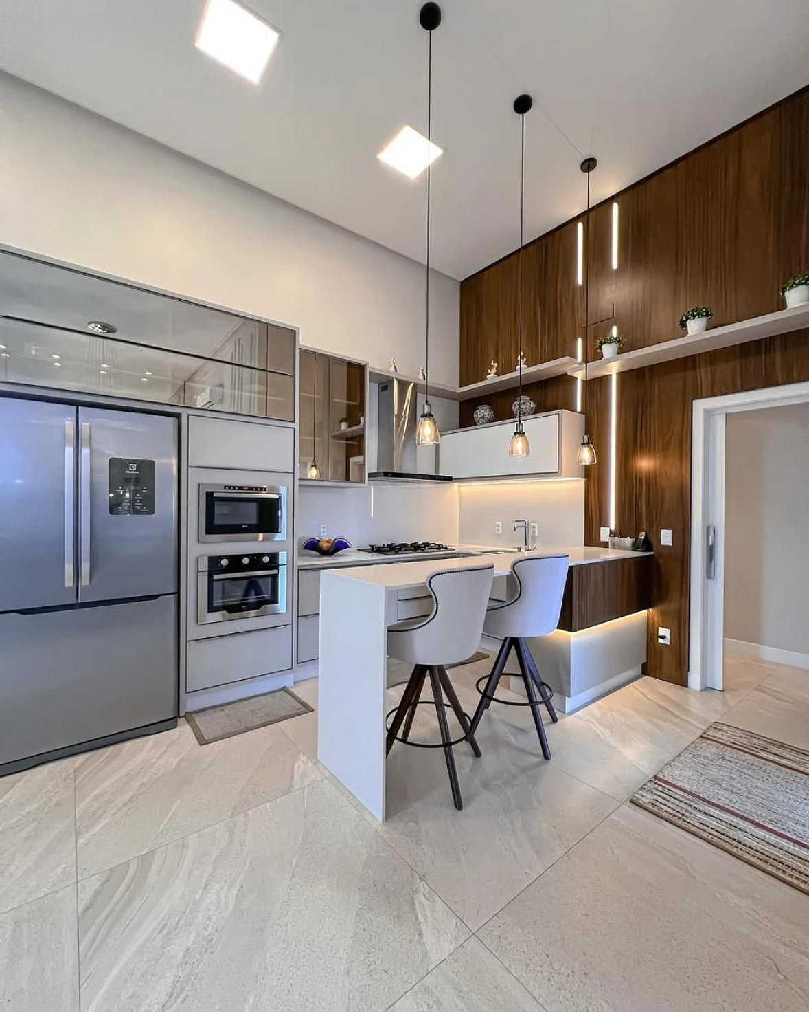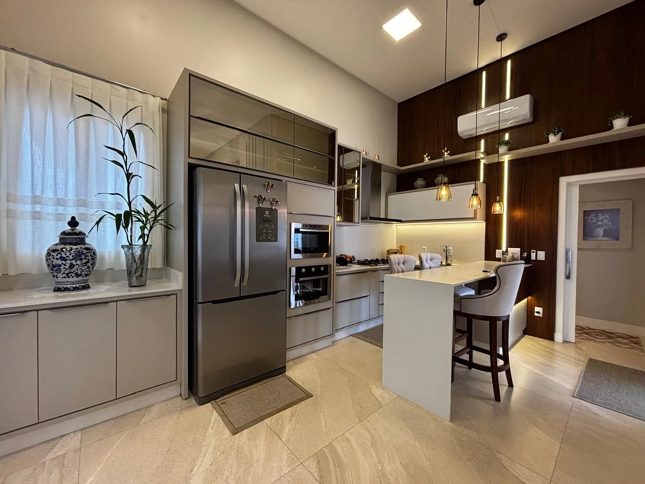 O imóvel conta com 3 dormitórios, sendo 1 suíte e 2 demi-suítes, além de 3 banheiros, proporcionando funcionalidade e privacidade para toda a família. O living integrado com pé-direito alto valoriza a iluminação natural e cria um ambiente amplo e acolhedor, perfeito para receber.