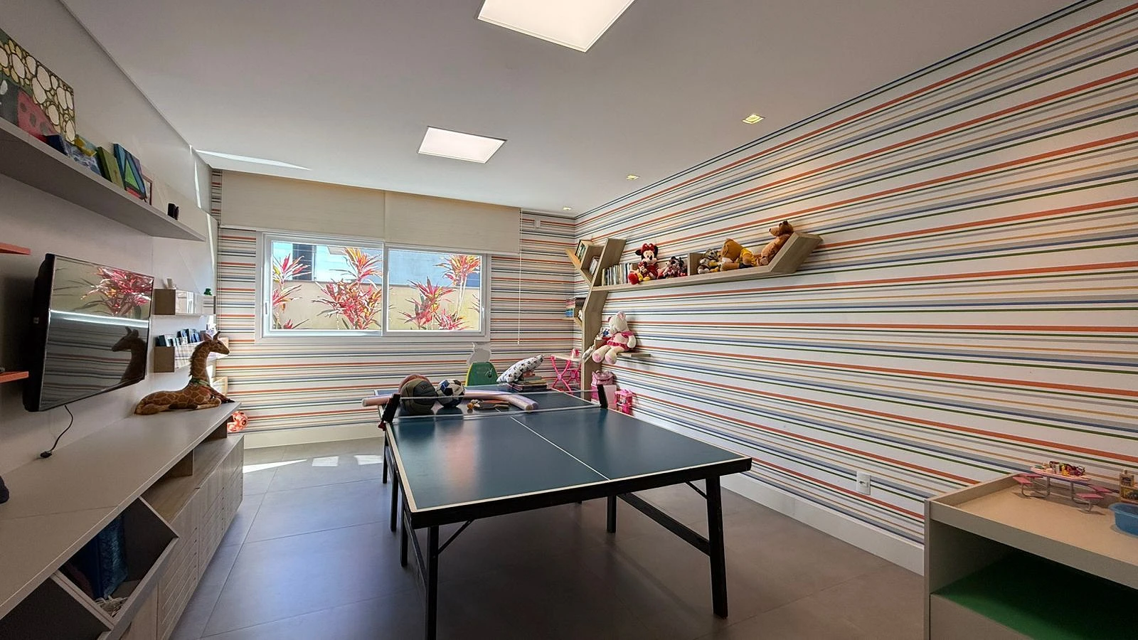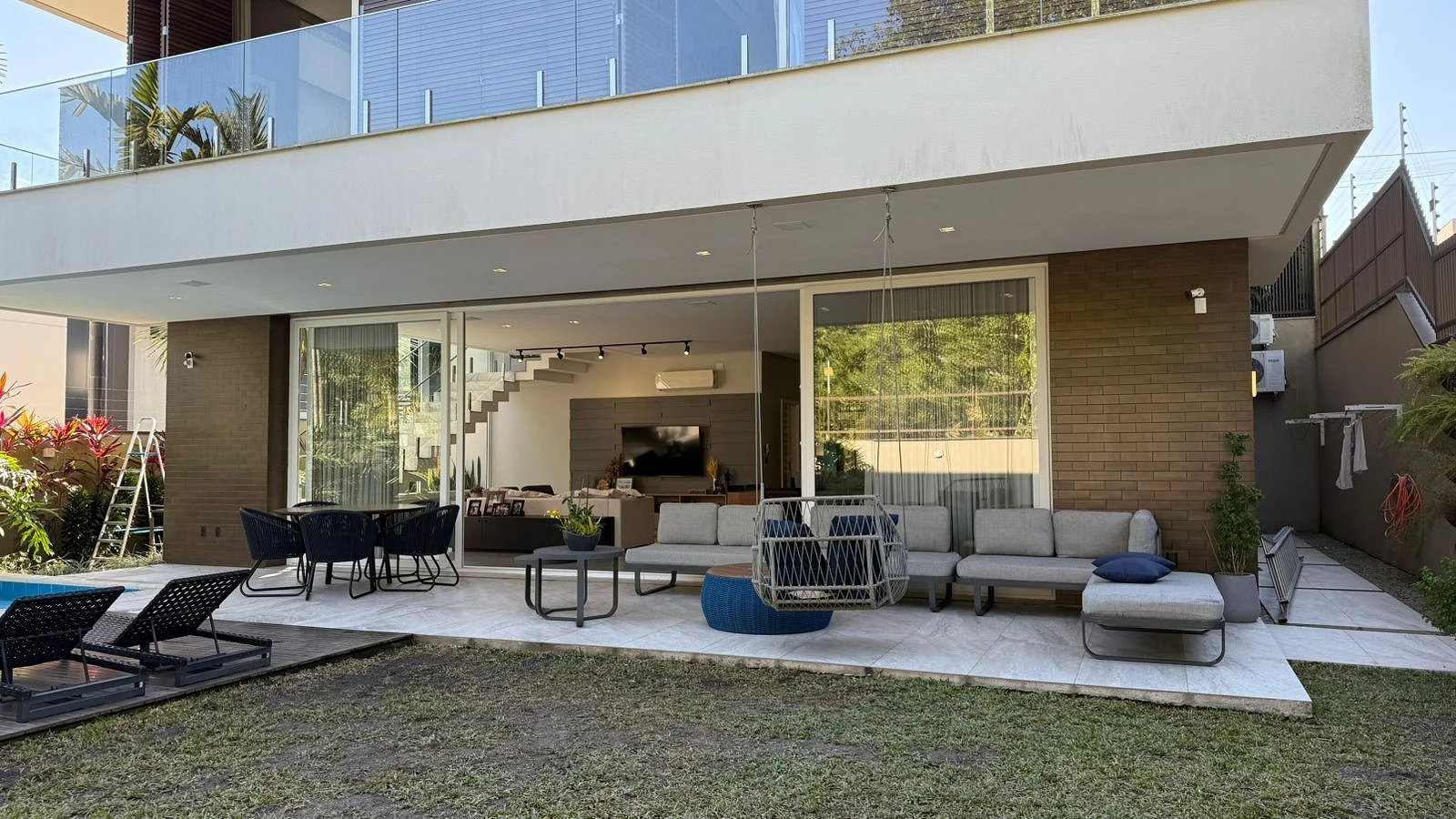 No pavimento inferior, o imóvel se transforma em um verdadeiro espaço de convivência e lazer. A área externa com deck e piscina convida para momentos únicos, integrada a um espaço gourmet completo com churrasqueira a carvão. O pavimento ainda dispõe de sala de TV, sala de jogos, depósito e lavanderia, garantindo conforto e funcionalidade no dia a dia.