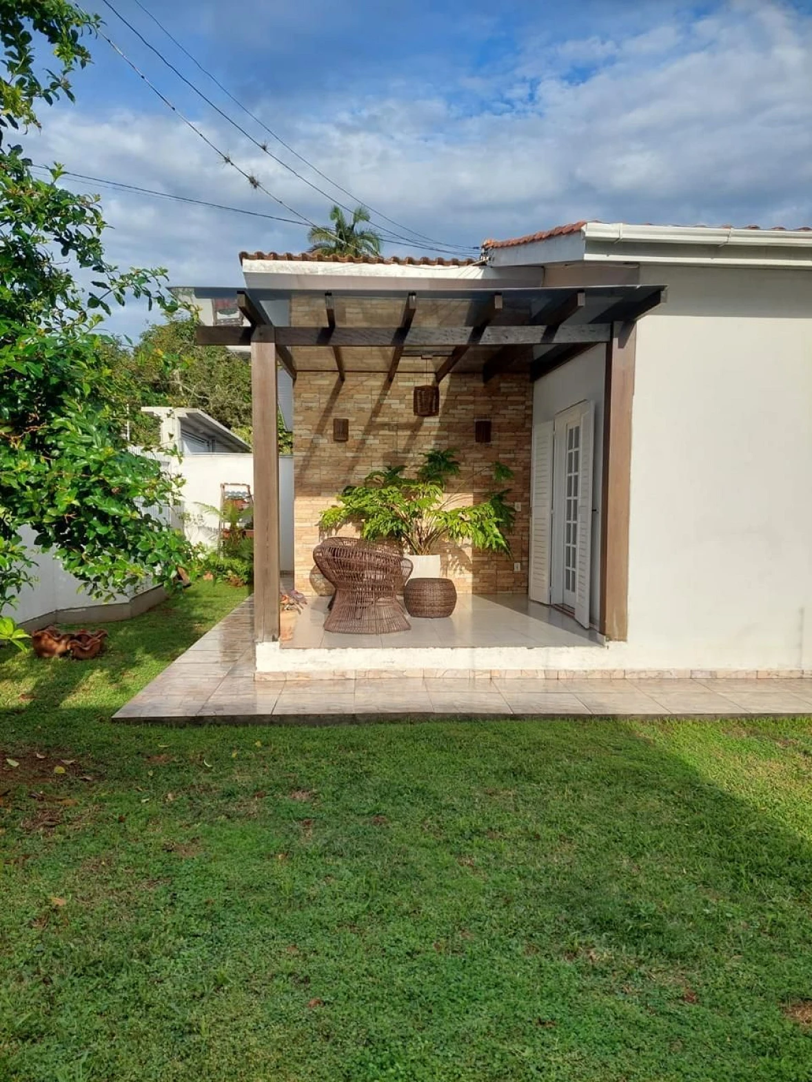 Na área externa, o destaque fica por conta da área gourmet com churrasqueira a carvão, piscina e edícula, além de lavanderia com banheiro de apoio. A garagem comporta 2 carros.