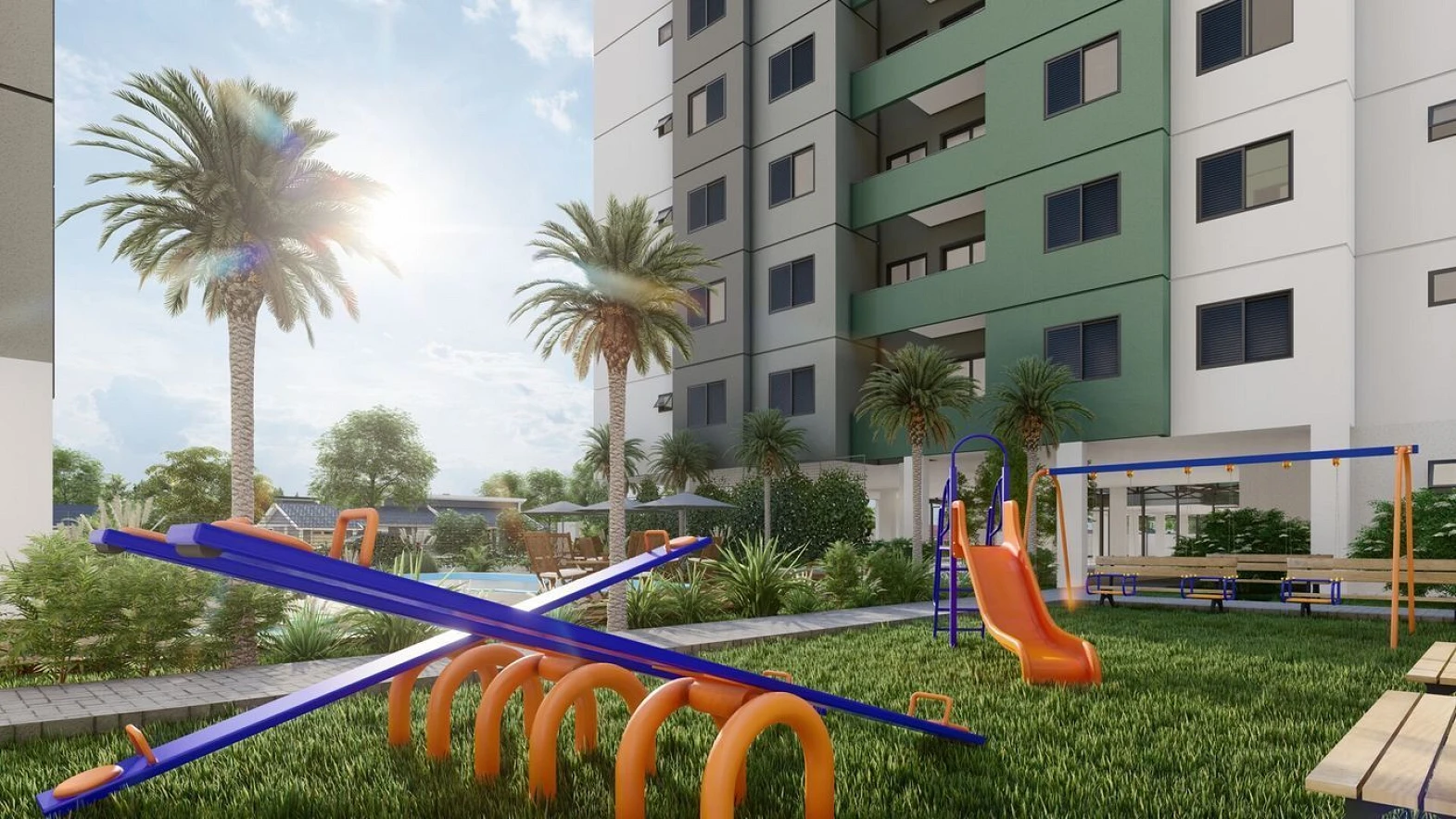 O condomínio fechado conta com lazer completo, incluindo piscina adulto e infantil, salão de festas, brinquedoteca, playground, pet place, espaço fitness e hall de entrada mobiliados, decorados e climatizados, além de segurança para toda a família.